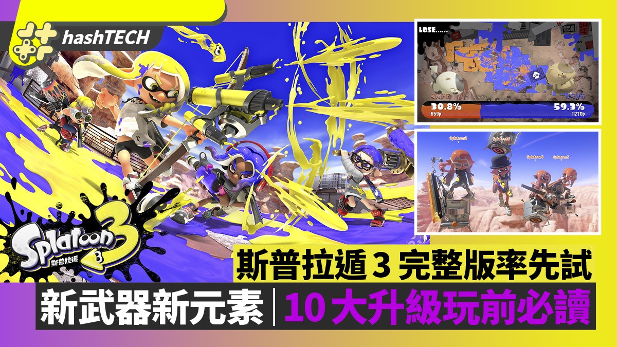 《斯普拉遁3》(Splatoon 3)是一款節奏爽快、畫面可愛、武器及打法都與別不同,很有任天堂風格的Switch專用射擊對戰遊戲。由於很多玩家已經在前夜祭試了手感,所以操作感覺方面就不多談了。早前HK01到Nintendo HK率先試玩了完成版,足足有10個新元素、系統升級位,即睇試玩報告。